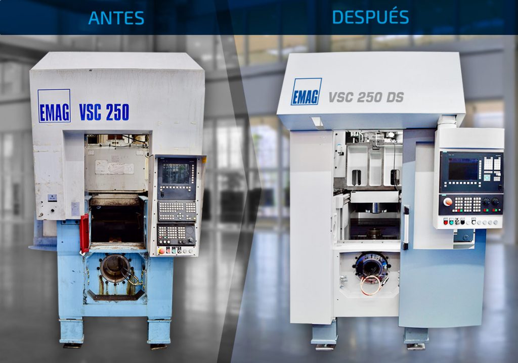 ¿Qué puede hacer el reacondicionamiento? La respuesta es corta: mucho. Según las necesidades del cliente, la máquina reacondicionada no sólo tiene componentes nuevos, sino que también puede equiparse con un sistema nuevo de automatización o tecnología adicional para herramientas. Por ejemplo, un torno puede convertirse en un centro de torneado y rectificado. A continuación, presentamos dos ejemplos, aunque la lista de posibilidades podría extenderse considerablemente.
