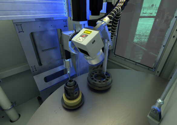 Außerdem ist das Laserreinigen ein serieller Prozess, während das Waschen ein Batch- oder Durchlaufprozess ist. In der Folge hat man beim Laserreinigen wesentlich weniger Teile im Reinigungsdurchlauf und es gibt keine Liegezeiten (wie bei Batch-Anlagen). Der gesamte Produktionsprozess lässt sich deshalb optimieren und als One-Piece-Flow konfigurieren. Dazu kommt ein geringerer Platzbedarf beim Laserreinigen. So benötigt die Maschine LC 4 von EMAG nur eine Stellfläche von 4,5 Quadratmetern. Sie lässt sich sowohl in ganzheitliche Produktionslinien einbinden als auch alleinstehend einsetzen. Dazu verfügt sie über einen Rundtisch, der getrennt vom Arbeitsbereich ist. Er kann bei Bedarf per Automation (oder eben per Hand) hauptzeitparallel be- bzw. entladen werden. Außerdem ist es optional möglich, zwei Bauteile gleichzeitig zu spannen, während zwei andere den Reinigungsprozess durchlaufen.