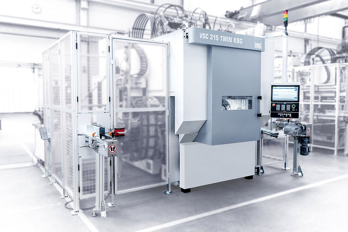 The VSC 315 TWIN KBG was specially designed for hard machining of straight ball raceways in joint housings, axle journals, ball hubs, joint hubs and joint rings. The machine impresses with its high-performance and accuracy, especially in high-volume production. Its design allows simultaneous machining of two workpieces, which increases productivity enormously - with a minimal footprint.