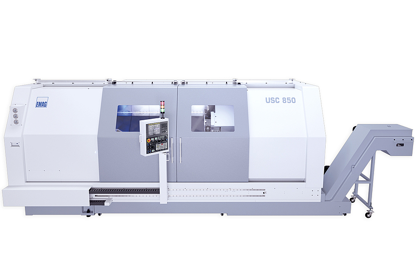 USC 850 通用车床配备了 BMT75 刀塔,可对复杂工件进行高效的整体加工。转塔可选配用于驱动式刀具。