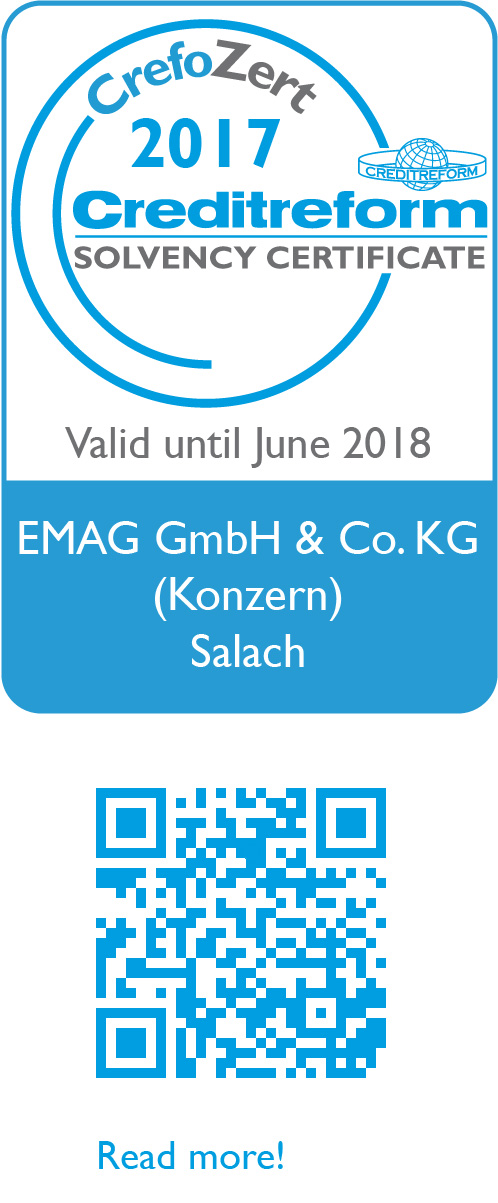 That EMAG has once again been the recipient of a Creditworthiness Certificate confirms the company’s excellent reputation and clearly shows that the EMAG Group is well prepared to withstand the challenges of the future.