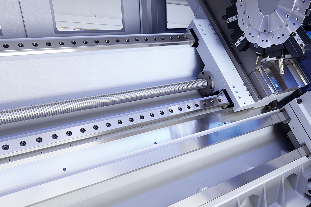 L'arrosage interne, qui passe directement par la tourelle, mérite d'être souligné. Celui-ci assure un refroidissement ciblé sur l'arête de coupe et améliore aussi bien la durée de vie des outils que la qualité de surface des pièces usinées. La construction robuste de la tourelle, associée à une indexation précise, permet de réaliser des opérations d'ébauche et de finition même lourdes avec une grande précision dimensionnelle. Un système de serrage hydraulique garantit un positionnement précis, même en cas d’efforts de coupe élevés.