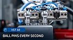 The machine scores with extreme performance figures. For example, the chip-to-chip time is less than 2 seconds - a ball pin leaves the VST 50 every seven seconds. This speed is made possible by a work area with two workpiece spindles and two optional tailstocks as well as a total of three robots for loading the work area and transporting the components to and from the outside. While one spindle is machining, the other spindle can be loaded and unloaded.